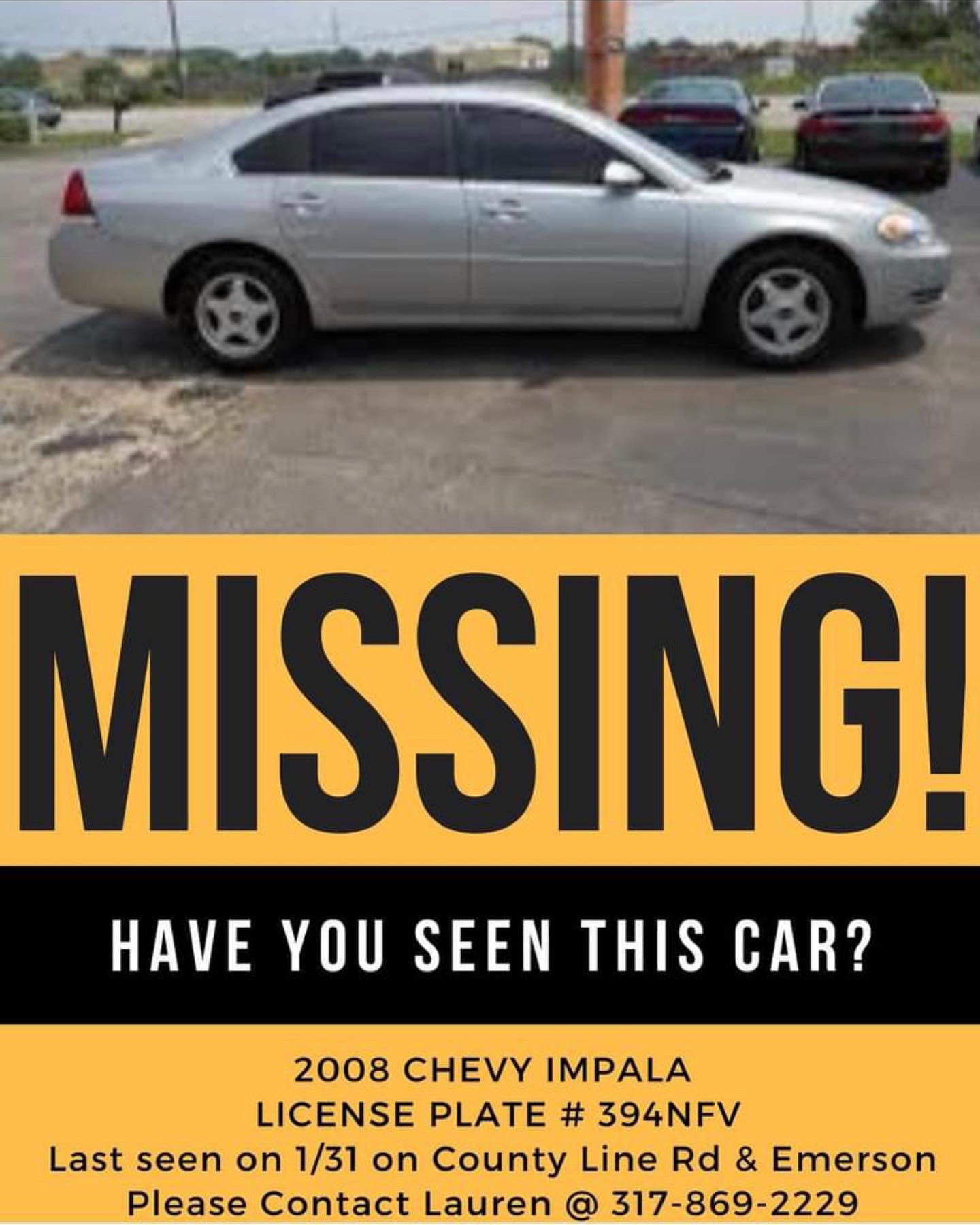 Amicia Ramsey On Twitter Her Family Says She Was Last Seen In Shelbyville On Feb 1st Her Silver Chevy Impala With Indiana License Plate 394fvn Is Also Missing An Impdnews Detective Has